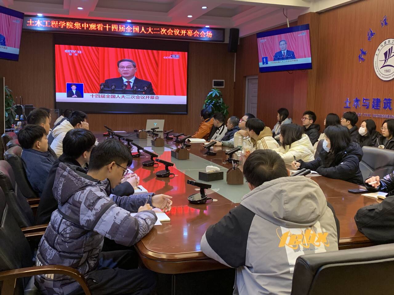 3月4日、5日,全国政协十四届二次会议、十四届全国人大二次会议开幕会先后在北京人民大会堂隆重开幕。学院第一时间组织广大师生收听收看开幕会盛况,全方位、多角度把握两会动态,深刻学习和领会两会精神。