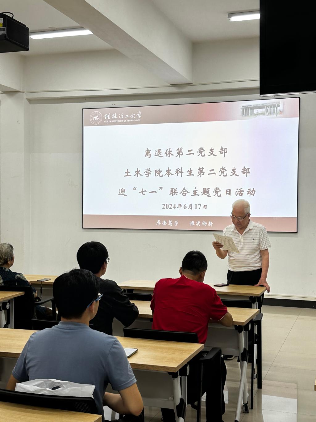 6月17日晚,学院本科生第二党支部与离退休第二党支部在屏风校区体育馆副楼212教室联合开展迎“七一”主题党日活动。离退休第二党支部书记于海平主持活动,离退休第二党支部党员代表、学院本科生第二党支部全体党员参加此次活动。