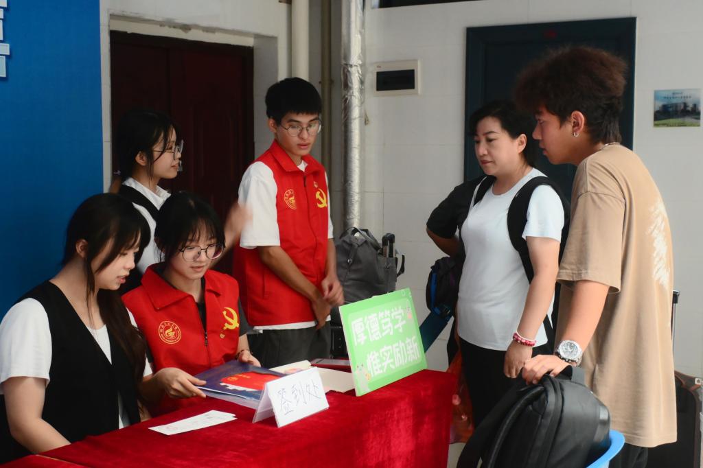 迎新现场,党员志愿者们手持醒目的“土木工程学院”引导牌,穿梭在人群中,为初来乍到的新生提供温馨的指引和帮助。他们不仅耐心解答新生关于报到流程、宿舍位置等问题,还主动帮助新生搬运行李,引导他们顺利入住宿舍。在志愿者的陪伴下,新生们感受到了来自学院的关怀与温暖,忐忑和懵懂的心情逐渐放松下来。