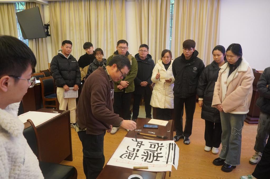 为弘扬新时代廉洁文化,扎实推进清廉学校建设工作,11月11日,学院特邀请艺术学院贾强飞老师,组织开展了一场以“墨香传廉志,文化塑廉魂”为主题的师生廉洁书法活动,此次活动吸引了学院师生踊跃参与。