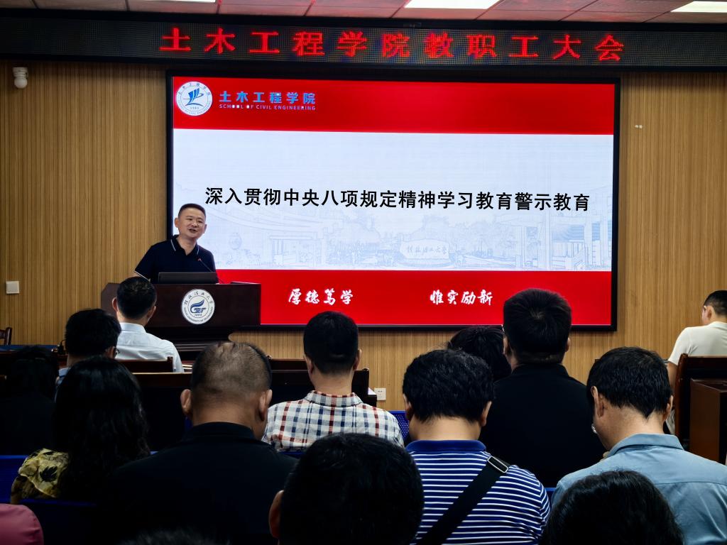 6月13日下午,学院在4203会议室召开深入贯彻中央八项规定精神学习教育警示教育大会,学院党委书记曾榕主持会议并讲话,在家学院领导班子成员以及全体教职工党员参加会议。