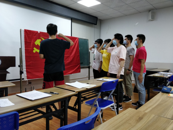 支部书记姚慧老师对此次会议进行了总结,她对按期转正的同志表示衷心的祝贺并给予殷切希望。会议最后支部副书记曹建同志带领9名转正同志面向党旗再次宣读入党誓词。