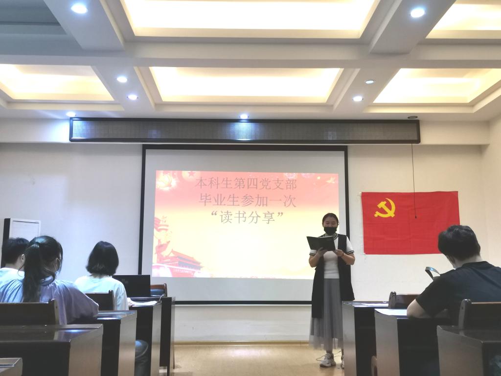 为响应党的号召,培养优秀党员,引导毕业生党员的前进方向,本科生第四党支部于6月9日在4204召开读书分享会。该会议由支部书记张春英同志主持,该支部全体党员同志参加了此次会议。 分享会上,张春英书记分享了自己的读书心得,在会议最后播放给新一代年轻人的短片《后浪》,勉励毕业生党员:今后无论在什么工作岗位,都要继续发扬党的良好作风,坚持做到学有所悟、学有所得,学以致用,不断增强党性修养,永葆共产党员的先进性,不辜负党组织的培养和期望,用青春奋进拥抱新时代!