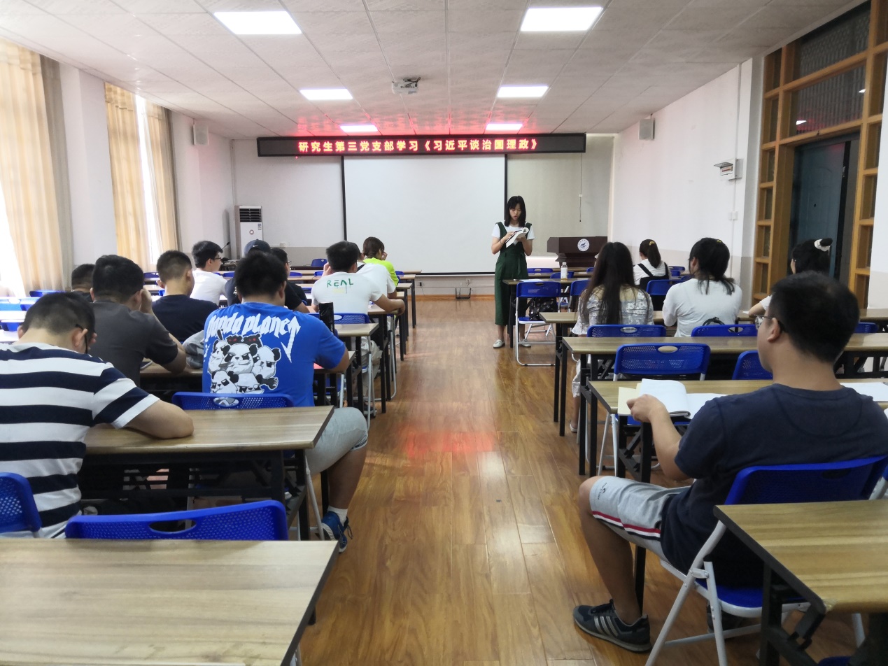 2020年9月14日,研究生第三党支部在4203教室召开专题学习会,集中学习《习近平谈治国理政》第三卷,会议由研究生第三党支部副书记宁博宏同志主持召开,支部书记何吉连老师参加会议。