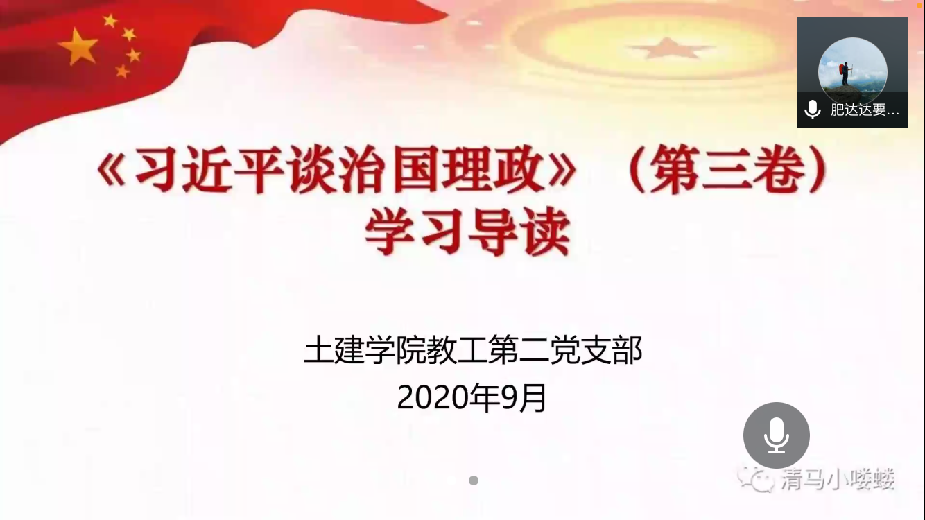 9月29日下午16:30,土木与建筑工程学院教工第二党支部召开《习近平谈治国理政》第三卷专题学习会。学习会由支部书记于伟同志主持并领学,采用腾讯会议方式,支部党员同志参与线上学习。