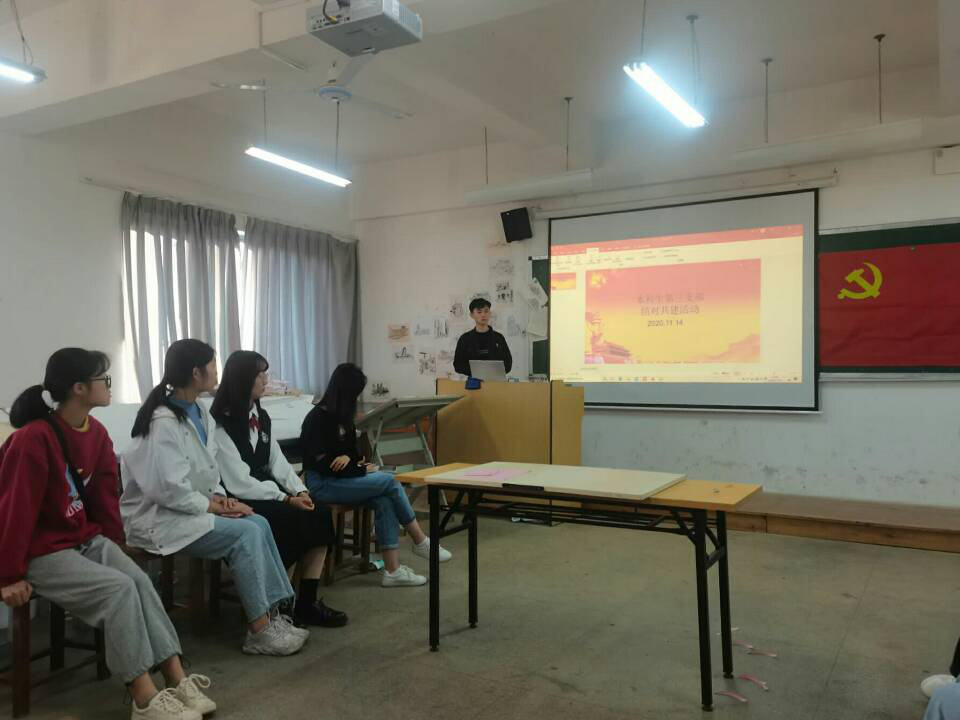 会议开始,张万里介绍本支部本学年结对共建班级包括建筑类2020-1班,2020-2班,土木类2020-6班,2020-7班。接着为大家讲解申请入党的流程,要求大家要树立的正确入党动机,随后与会成员一同观看了红色影片《建党伟业》。