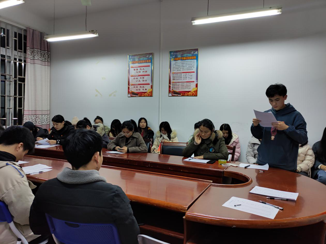 会议开始,由7名申请转正的同志依次上台做简短的发言,汇报预备期一年中的思想、学习、工作以及生活上的感悟、收获及表现等情况。然后由本科生第三党支部成员分别对其作出评价,说明该同志在这一年预备期内的优缺点,还有待改善和提高的地方,并表达是否建议其转为正式党员。随后由支部党员进行无记名投票。投票结果是7名待转正同志全部顺利通过。最后,由支部书记张春英同志作总结性发言,对转正的党员给予肯定和表示祝贺的同时,还强调各位同志在以后的学习生活中要更加刻苦、更加自律,时刻以党员标准严格要求自己。