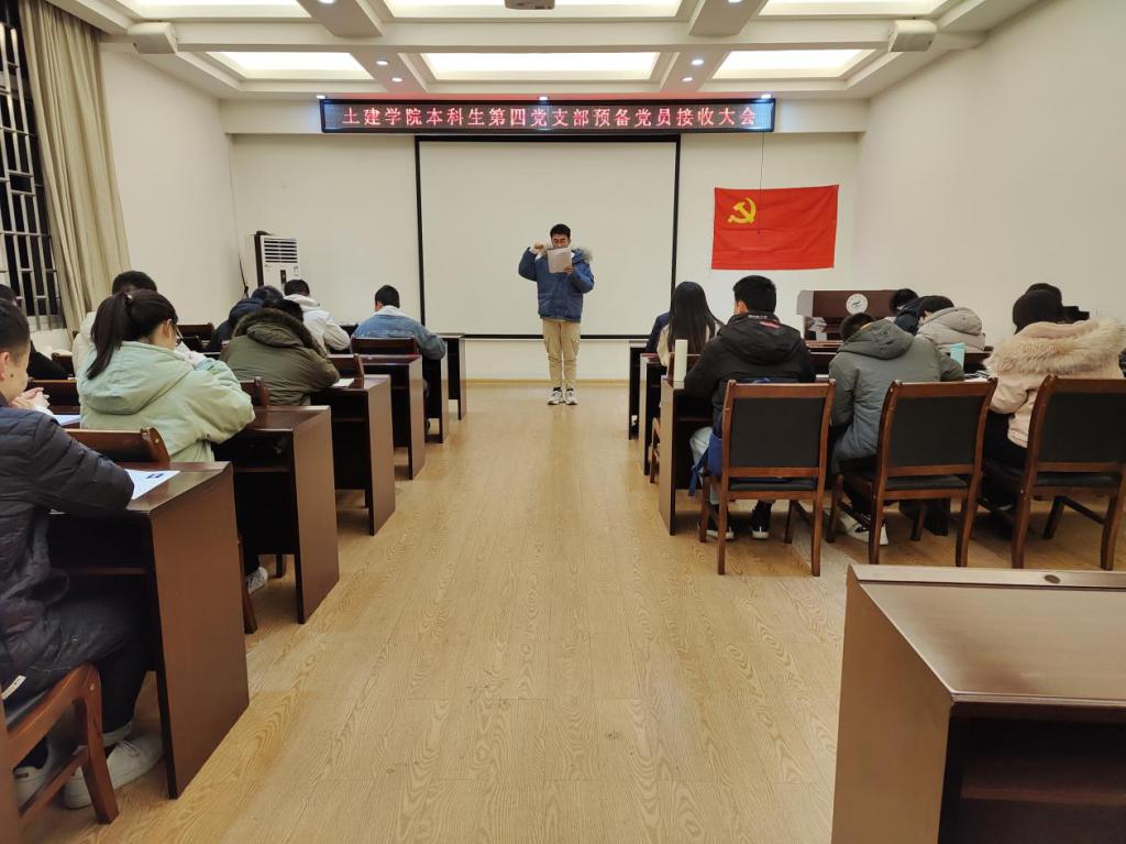 2020年12月17日,土木与建筑工程学院本科生第四党支部于4204召开预备党员接收大会,支部全体党员参加了本次接受大会。会议由支部副书记张杨杨同志主持。