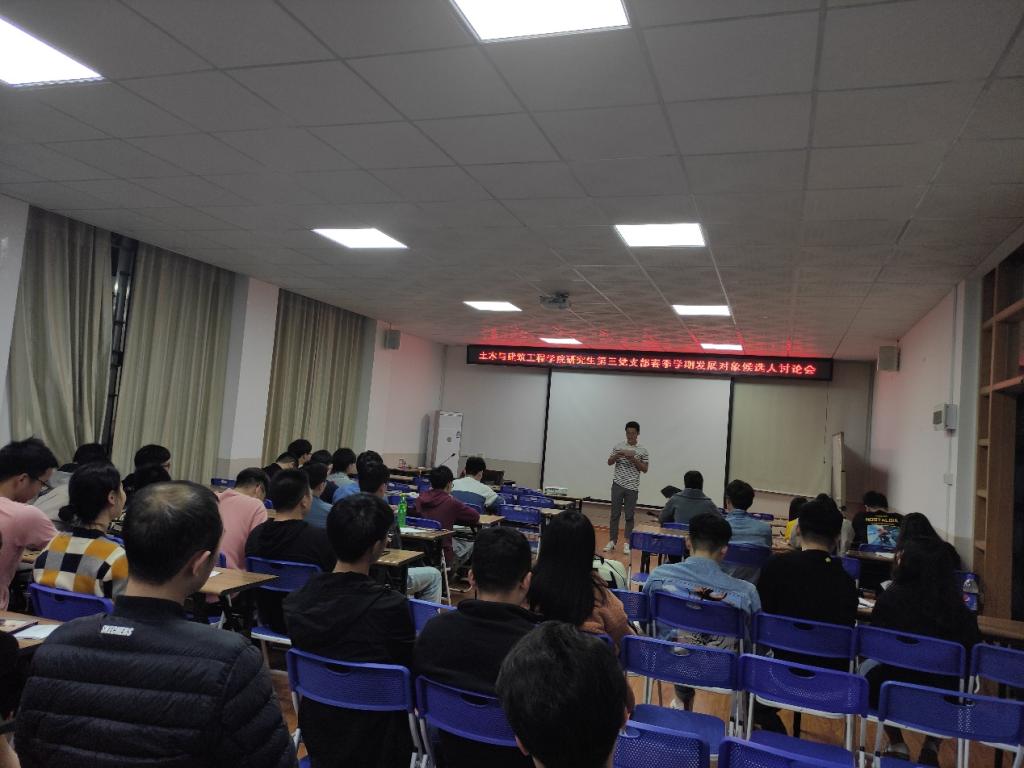 4月21日晚,研究生第三党支部在4203召开党员大会,讨论支部2021年春季学期发展对象候选人事宜,支部全体成员参加会议,会议由支部书记何吉连主持。