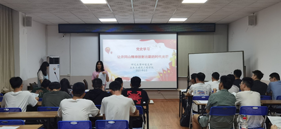 会上,党支部书记彭思思同志作了题为《让井冈山精神放射出新的时代光芒》的专题学习会,彭思思指出:井冈山精神诞生于土地革命时期,是我国重要红色精神之一,井冈山精神的内涵是坚定信念、艰苦奋斗、实事求是、敢闯新路、依靠群众、勇于胜利;然后支部同志谈学习感悟,同志们表示要认真学习、坚定理想信念,改革创新多出成果;最后支部书记勉励大家实事求是,开拓进取,让井冈山精神放射出新的时代光芒。