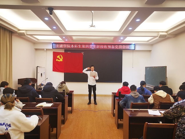 2021年12月10日,土木与建筑工程学院本科生第四党支部于4204召开预备党员接收大会,支部全体党员参加了本次接收大会,会议由支部副书记卢博同志主持。