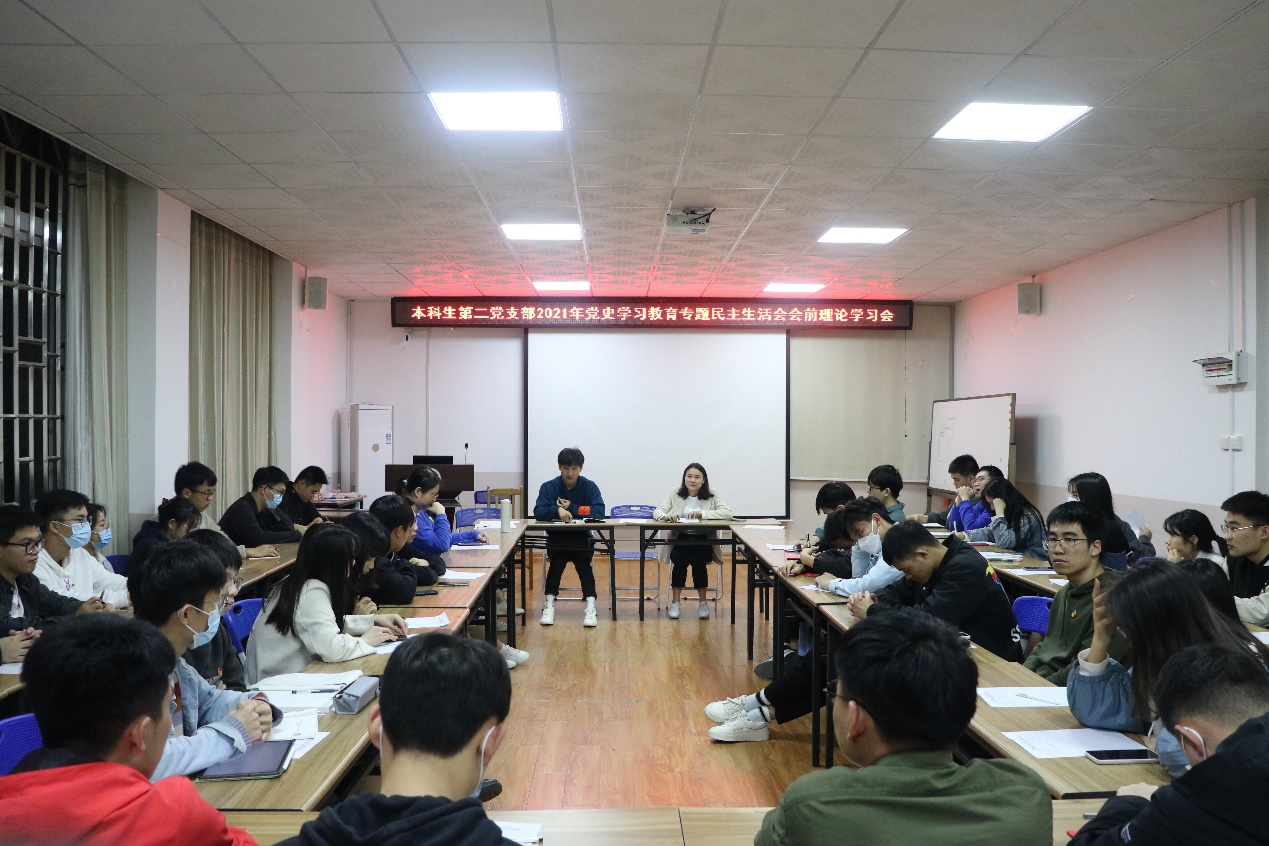 3月10日下午,本科生第二党支部于4203会议室召开2021年党史学习教育专题组织生活会会前理论学习会,学习会由支部书记张绪婷同志主持。