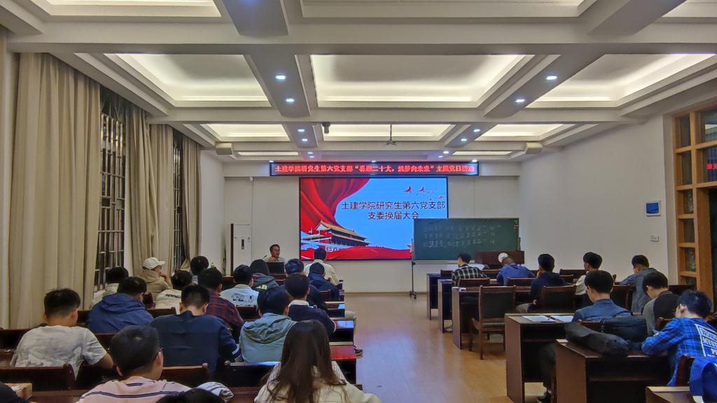 为庆祝党的二十大胜利召开,及时学习领会党的二十大精神,10月31日晚,土木与建筑工程学院第六党支部召开了“喜迎二十大,筑梦向未来”主题党日活动暨支部委员会换届大会,本次支部大会有表决权的正式党员34名,应到会34名,实到会28名,会议由支部副书记黄子恒同志主持。