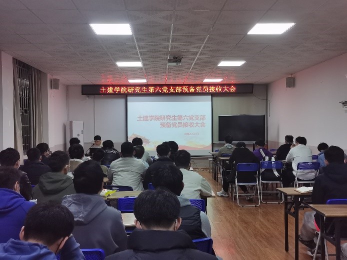 12月13日晚,研究生第六党支部召开预备党员接收大会,本次支部大会有表决权的正式党员34名,应到会34名,实到会25名,会议由支部副书记黄子恒同志主持。