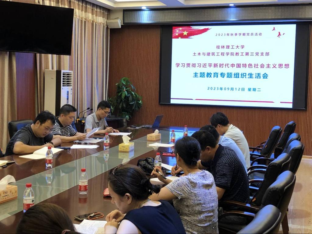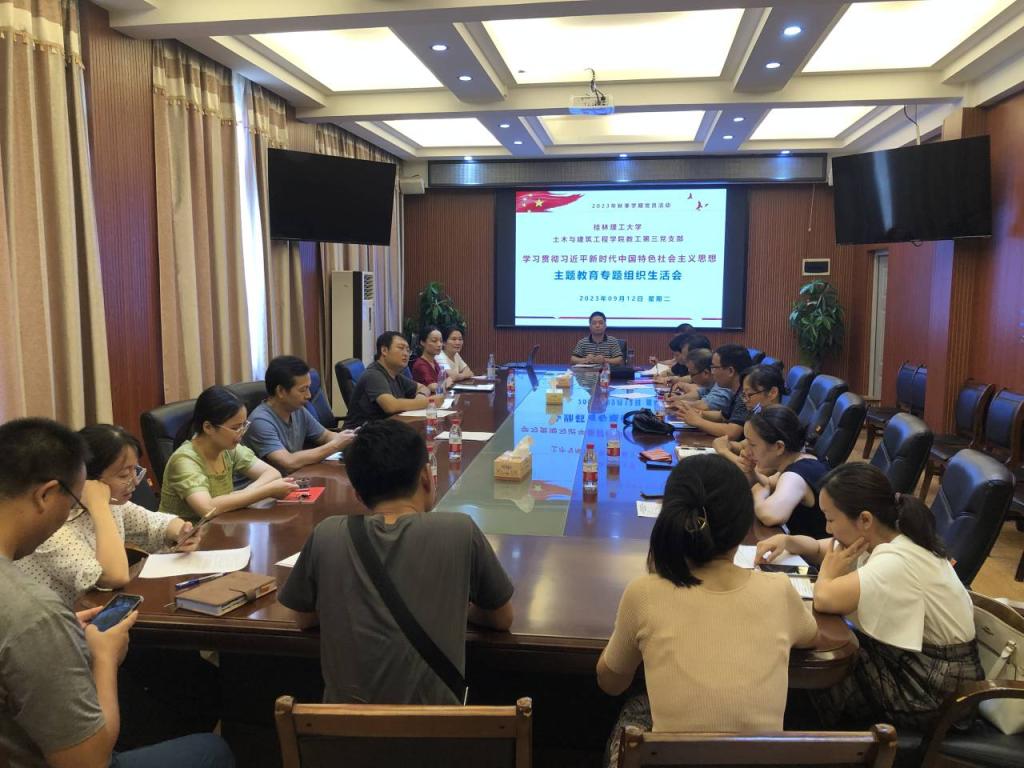2023年9月12日下午,我院教工第三党支部在屏风校区4222会议室召开学习贯彻习近平新时代中国特色社会主义思想主题教育专题组织生活会,会议由支部书记谢永雄同志主持,支部的全体党员同志参加会议,学院副院长余文成同志参加会议并对组织生活会进行指导。