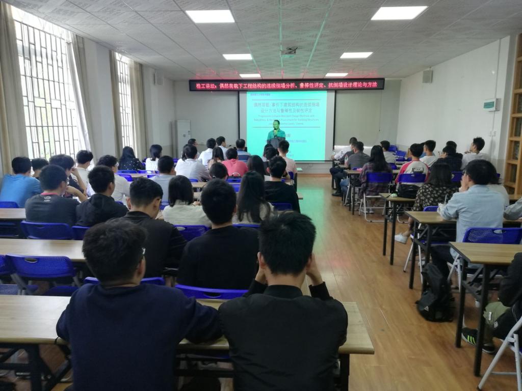 为加强学术交流,促进我院学生创新科研方法及研究思路,拓宽科研视野,10月21日,我院有幸请到哈尔滨工业大学吕大刚教授莅临讲学,讲座主题为“偶然荷载下工程结构的连续倒塌分析、鲁棒性评定、抗倒塌设计理论与方法”,我院师生共计110余人到场参加。