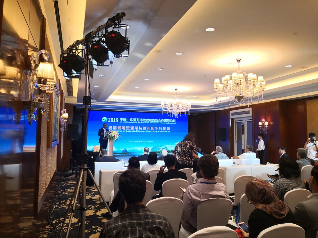 9月21日,喀斯特景观资源可持续利用平行会议论坛在桂林香格里拉大酒店举行,中国地质科学院岩溶地质研究所胡茂焱所长主持了本次论坛,我院研究生代表参与了此次论坛。