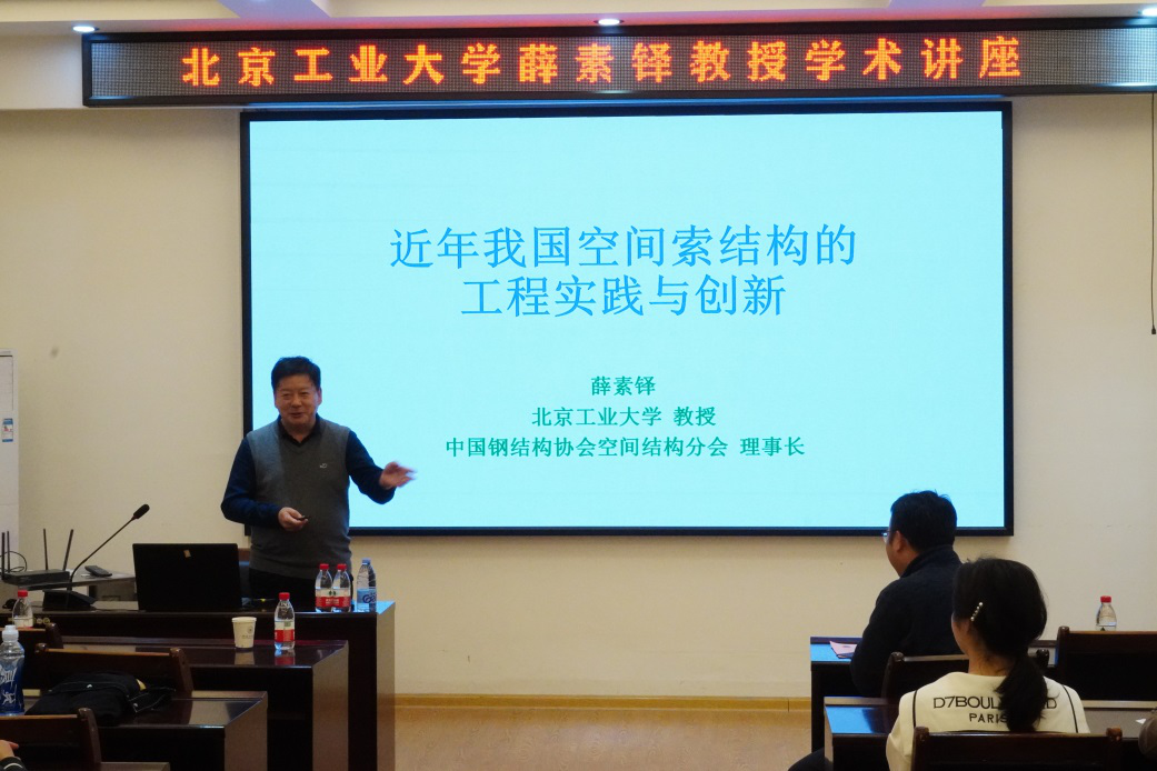 2021年3月26日晚,中国钢结构协会空间结构分会理事长、北京工业大学空间结构研究中心主任薛素铎在屏风校区4204会议室,为我院师生开展了主题为“近年我国空间索结构的工程实践与创新”的学术讲座。