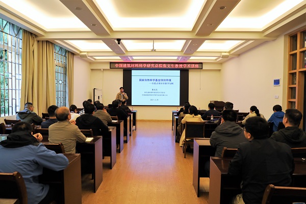 2021年4月26日下午,中国建筑材料科学研究总院绿色建筑材料国家重点实验室首席专家张文生教授在屏风校区4204会议室,为我院教师开展了主题为“国家自然科学基金项目申报——以重点项目申报书为例”的培训活动。