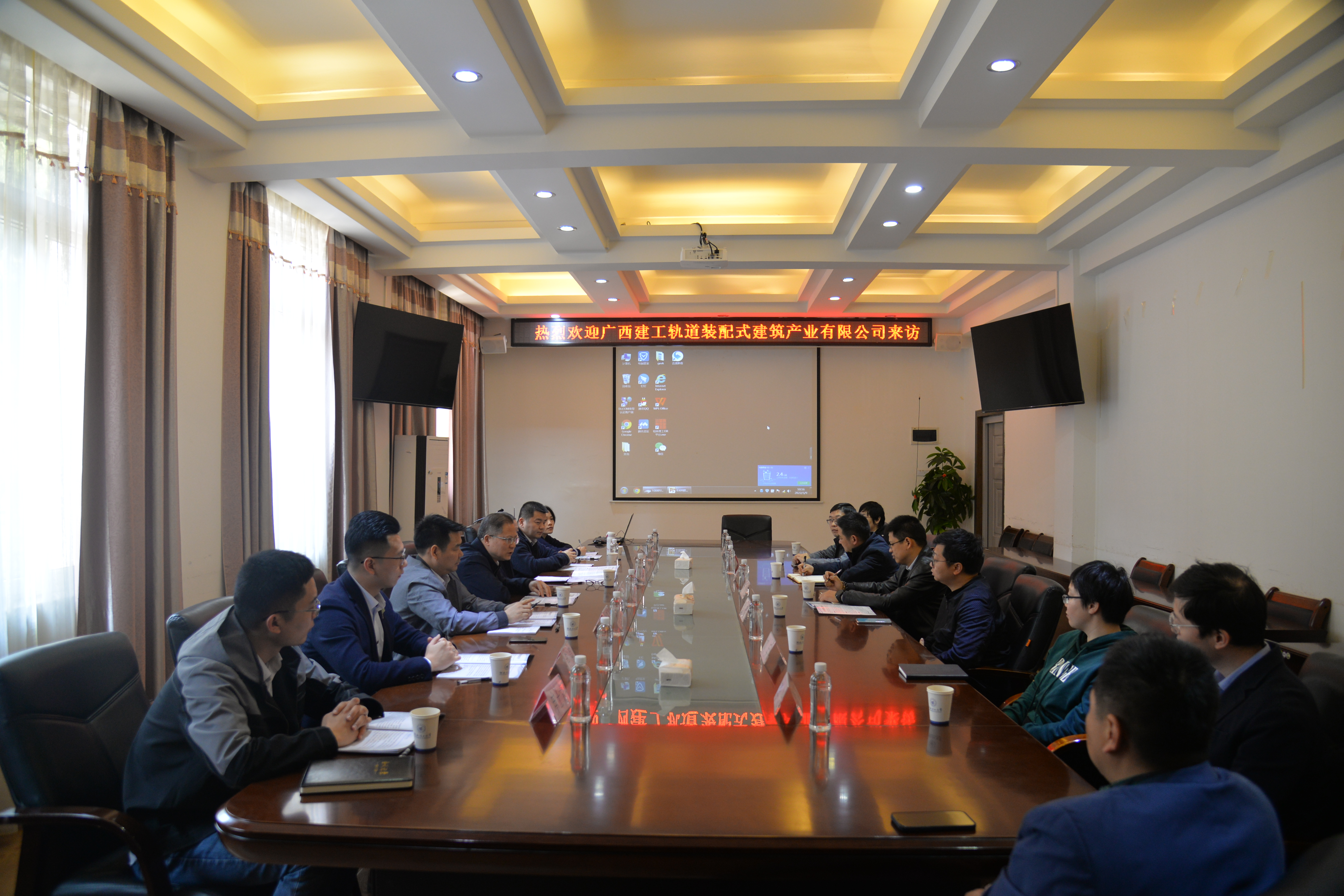 2022年3月9日上午,广西建工轨道装配式建筑产业有限公司总经理、党总支副书记覃幼辙携公司相关部门负责人来我院交流学习,我院党委书记曾榕、院长钱凯及相关领域科研人员出席交流会。
