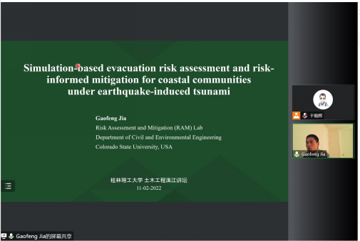 10月26日下午,科罗拉多大学贾高峰教授做客我校土木工程“漓江讲坛”,为广大师生开展了题目为“地震引起海啸条件下的逃生风险与防灾减灾”的学术讲座,于晓辉教授主持了此次讲座。