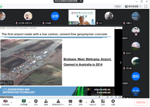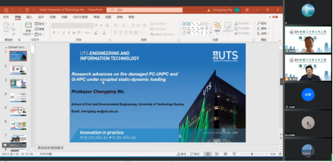 会上,吴成清教授首先对地聚合物基超高性能混凝土的配比、制备方法及设计理论进行了介绍。随后,吴教授细致阐述了地聚合物基超高性能混凝土的基本力学性能,以及其在高温、爆炸等作用下的力学性能和结构响应,并结合团队研究的最新成果,对当前地聚合物基超高性能混凝土运用在混凝土结构抗火、抗爆等方面的关键问题提出了独到见解。最后,吴教授与参会的广大专家学者、师生们进行了热烈而富有成效的互动交流。