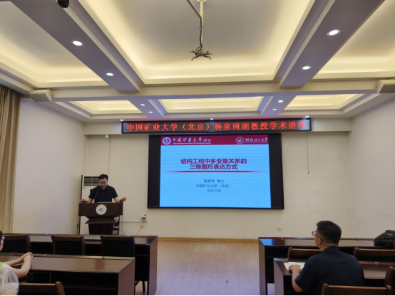 应学院邀请,6月19日下午,中国矿业大学(北京)杨家琦副教授到我院,为广大师生开展了题目为“结构工程中多变量关系的三维图形表达方式”的学术讲座。