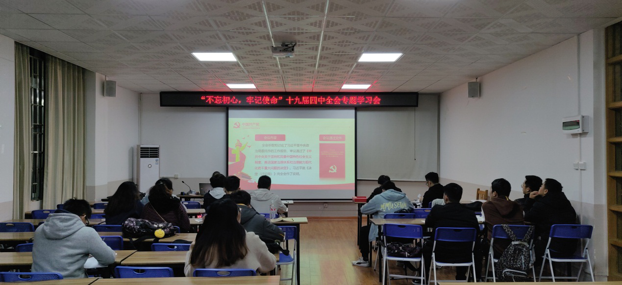 2019年11月26日,为了了解和学习中国共产党第十九届中央委员会第四次全体会议公报,土木与建筑工程学院本科生第五党支部党的十九届四中全会学习会议在4204召开,本次会议由本科生第五党支部书记姚慧老师主持召开,本科生第五党支部全体学生党员和部分积极分子参加了本次学习会议。