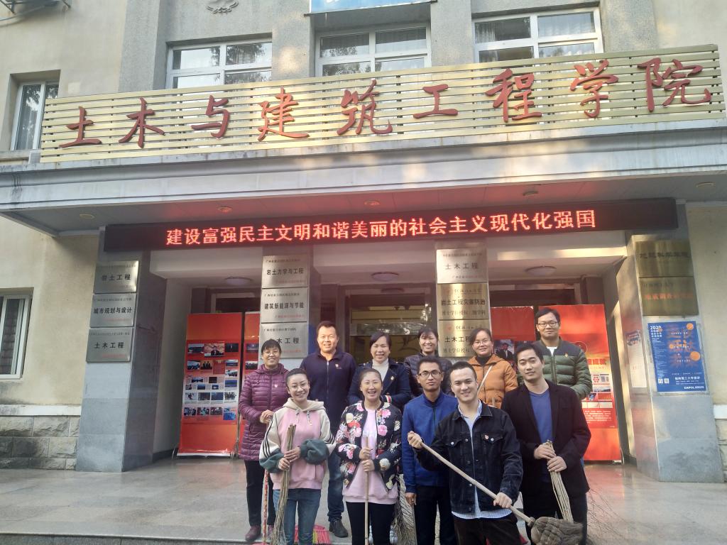 11月25日下午4:30,土建学院教工第四党支部践行“不忘初心、牢记使命”行动,在教四楼门口开展“美化校园我先行”主题教育志愿服务活动。