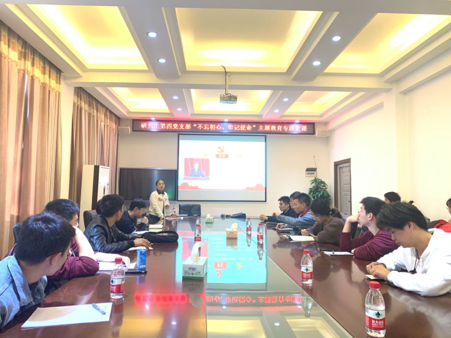 通过此次党课,使究生第四党支部全体党员认识到“不忘初心、牢记使命”主题教育的重要性、必要性和紧迫性,进一步解放思想、勇于担当作为、增强实干创新意识,为我们走向社会,发扬党员精神,争做合格党员奠定了坚实基础。