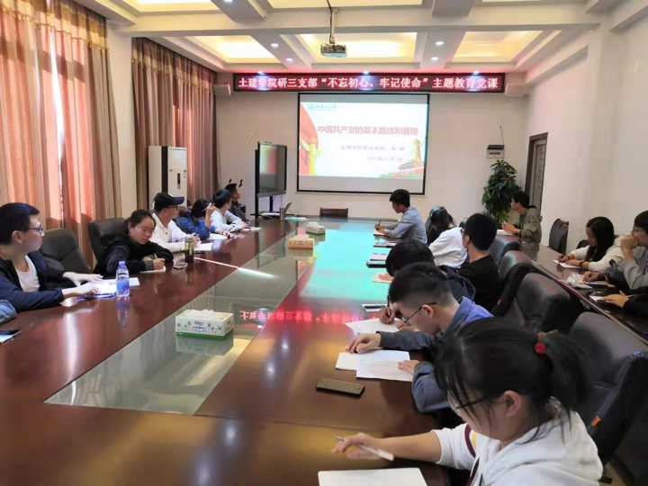 2019年11月5日,我院研究生第三党支部在4222会议室开展“不忘初心、牢记使命”主题教育党课活动。课程由土木与建筑工程学院党委书记、研究生第三党支部书记曾榕书记讲授,支部正式党员与预备党员参与党课学习。