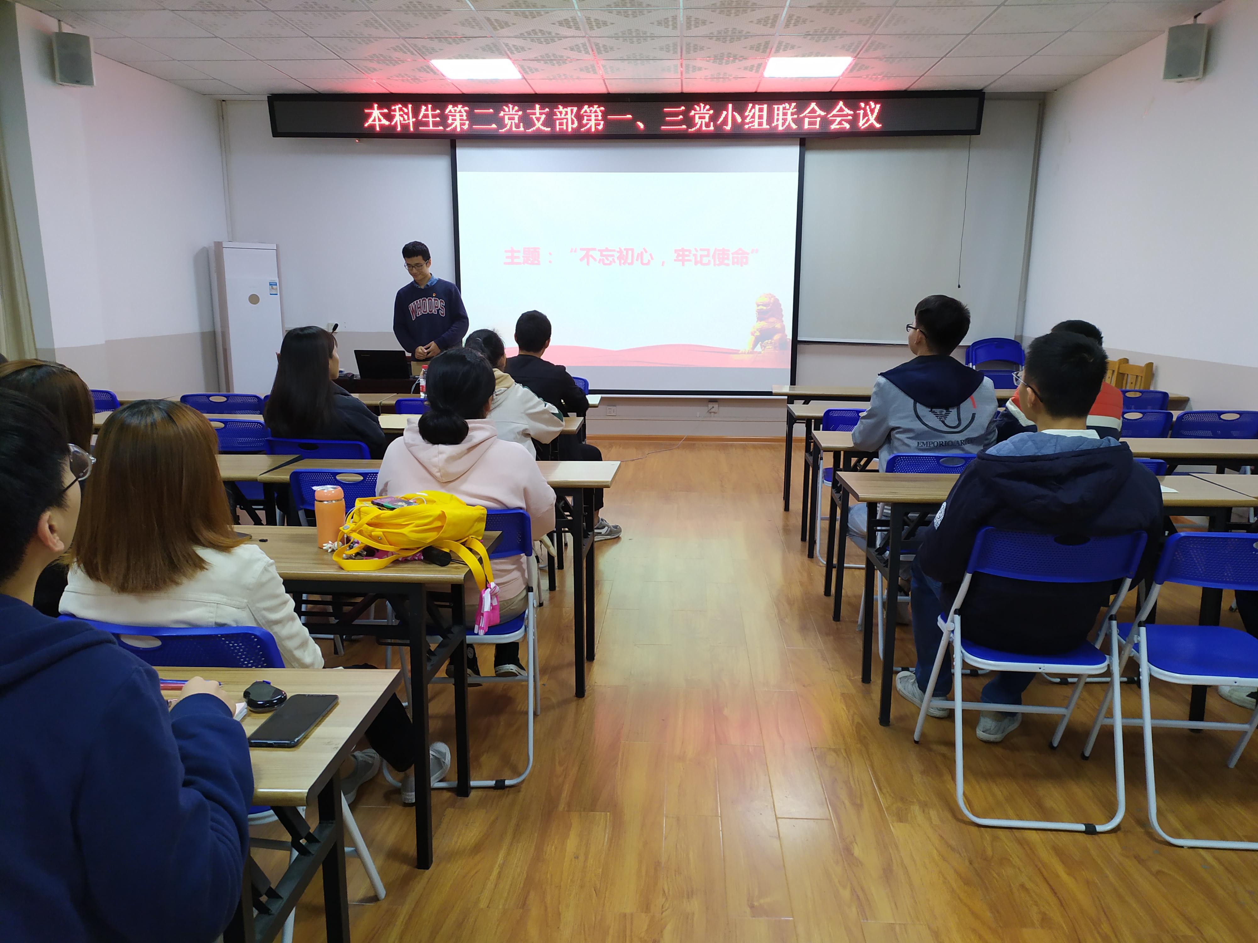 2019年10月28日下午,本科生第二党支部第一、三党小组在屏风4203会议室召开了党小组专题学习会议。会议围绕不忘初心,牢记使命的主题展开,此次会议由第三党小组组长邓家辉同志主持。
