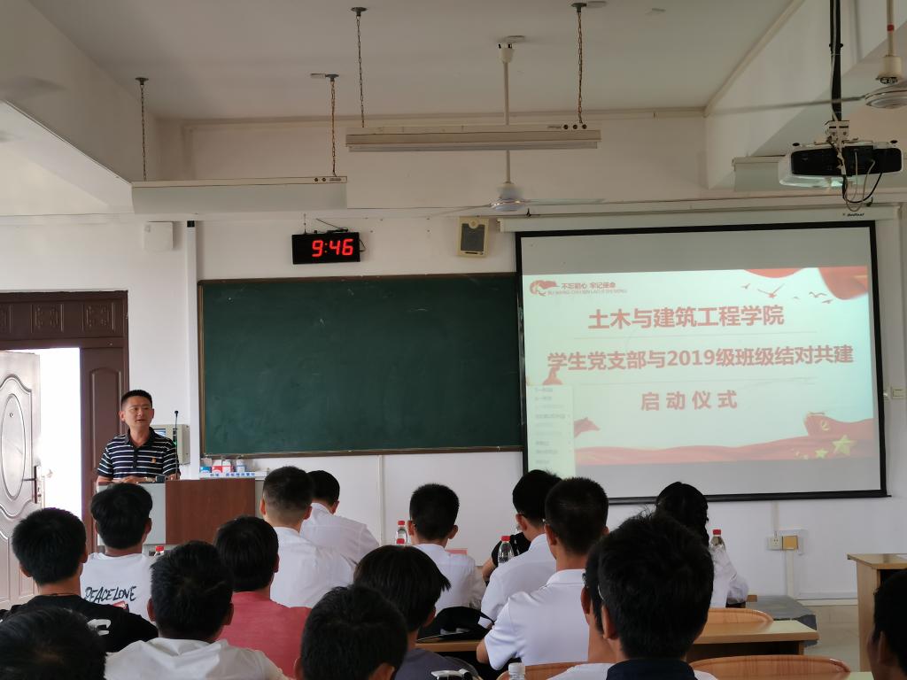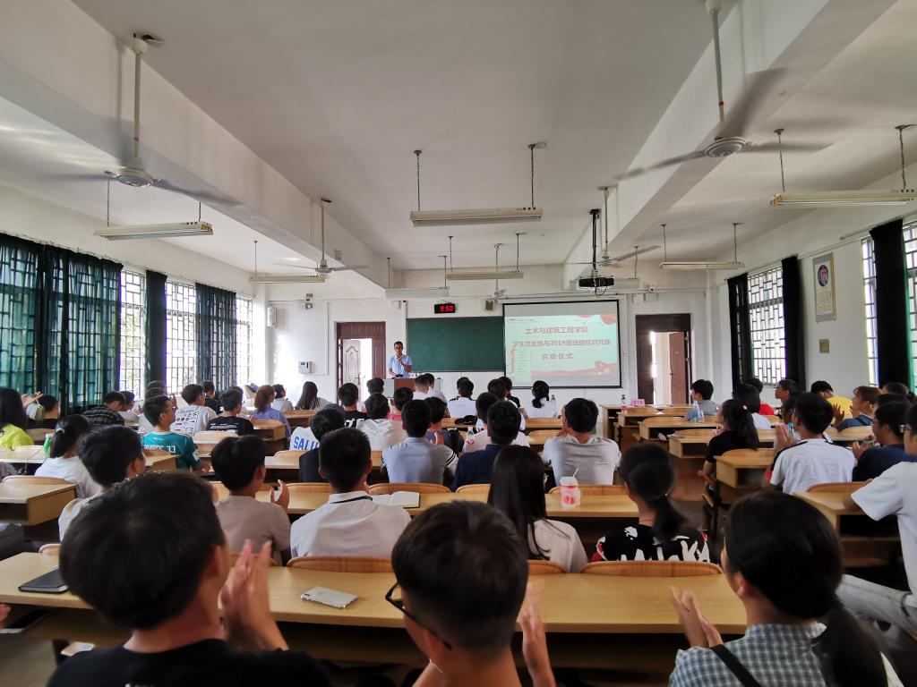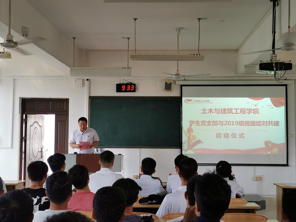 在掌声中,学生党支部代表姜超同学与建筑类2019-1班周庆妍共同签订共建责任书,其他支部与班级在会议结束之后签订了共建责任书。最后,学院党委书记曾榕老师发言,他希望通过结对共建为党支部和新生班级搭建联系平台,让党支部参与和帮助新生班级建设、以党建带团建、促进新生班级良好班风、学风的形成。同时,希望2019级同学们以结对共建为契机,增进对党的了解和认识,增强对党的认同,坚定跟党走的理想信念。